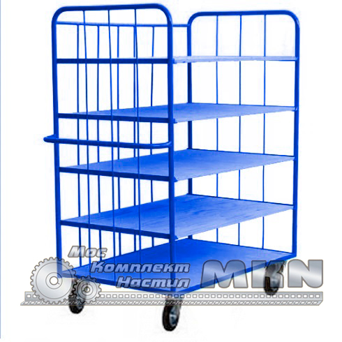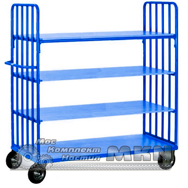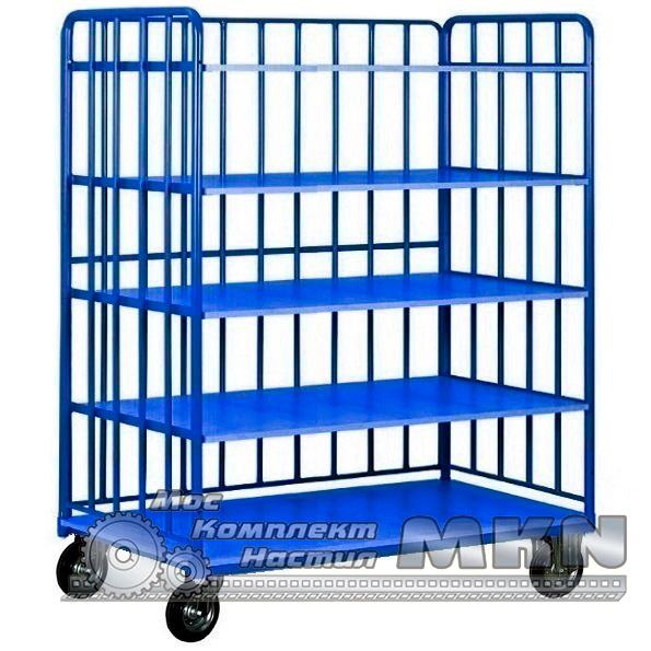 Грузовая 4-х колесная тележка стеллажная цельнометаллическая для хранения Фотон-МGRU 3TG. С трубчатыми бортами, G-ручка, с цельнометаллическим дномСкладская 4-х колесная стеллажная тележка для складирования с металлическими полками. Внимание: