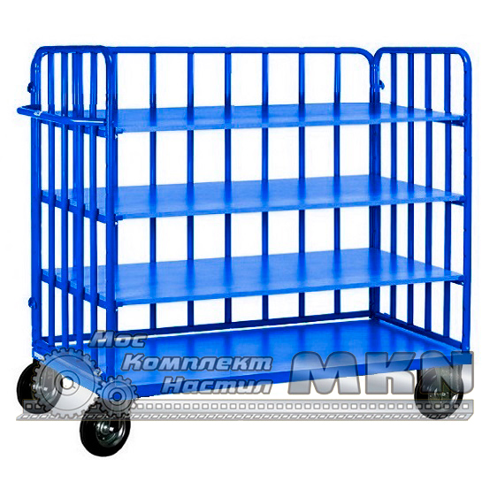 Промышленная тележка-стеллаж с цельнометаллическими полками Фотон-MGR 3TG. Грузовая, с 3-х сторонней трубчатой защитой и цельнометаллическим дном.Грузовая 4-х колесная тележка-стеллаж для складирования с металлическими полками. Внимание: