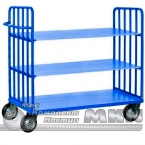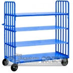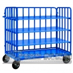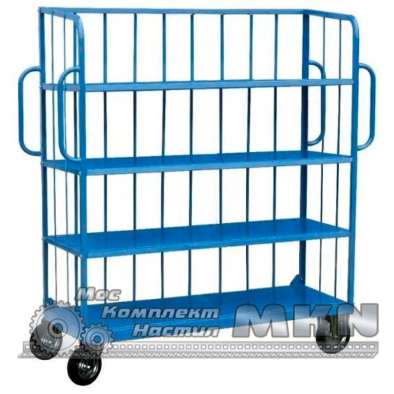 Тележка-стеллаж грузовая для склада и магазина 4-х колесная Фотон-MGR TB4R. С 4-мя ручками и с 3-мя трубчатыми бортами, полки цельнометаллические.Складская грузовая тележка-стеллаж для хранения товара, с металлическими полками. Внимание: