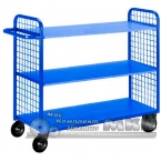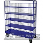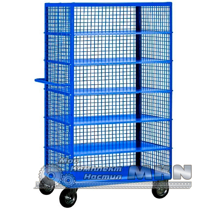 Стеллажи на колесиках с сетчатой защитойСтеллаж на колесиках закрытого типа для хранения тары коробок груза Фотон-M SGRG. 3 стенки сетка металл, ручка, дно и полки цельнометаллическиеСтеллаж-тележка металл 4-х колесная полочная складская с сетчатой защитой 3 стенок. Внимание: