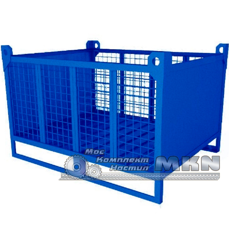 Контейнеры легко устанавливаются друг на друга в штабель, что позволяет значительно экономить пространство на складе. Дно выполнено из холоднокатаной стали толщиной - 2 мм.