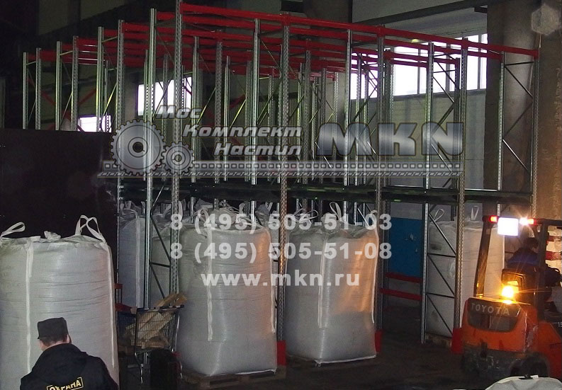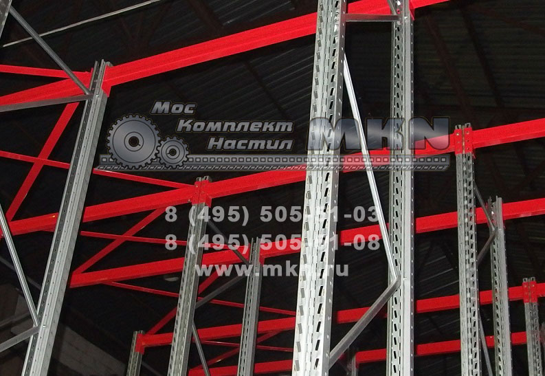 Набивные стеллажи глубинной загрузки на зацепах (техника заезжает вглубь)